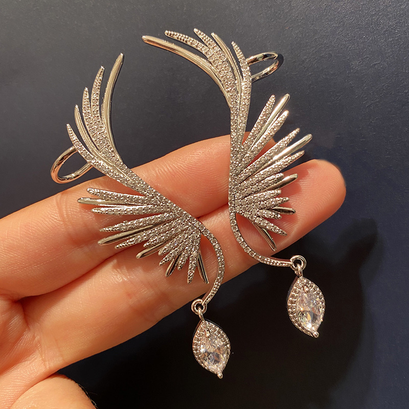 クロスボーダー専用起爆用の天使の翼にジルコンのピアスを入れた女性の銅メッキのマイクロメッキのイヤリング卸売り