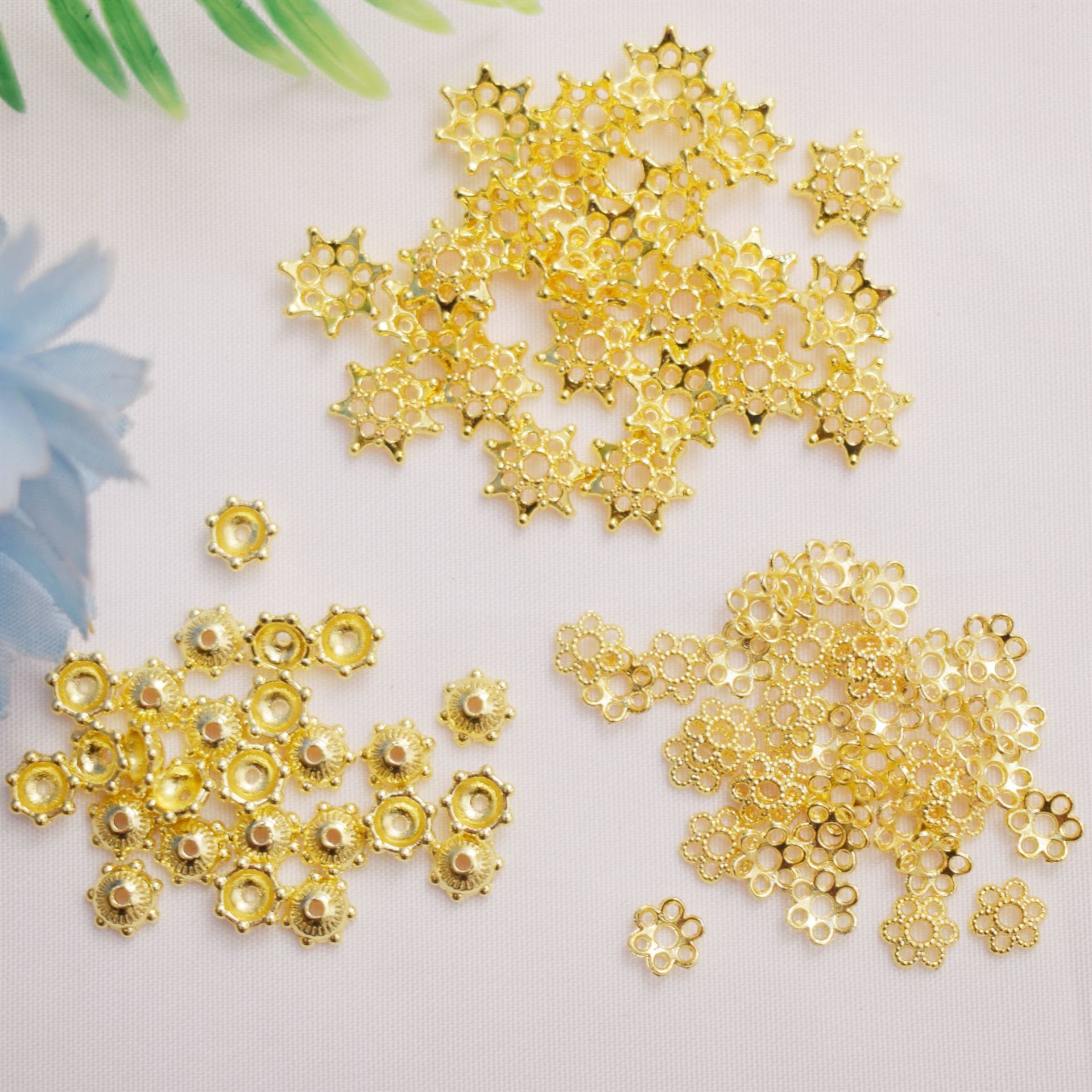 14kバッグ金色保色花托diy手作り手串仕切り花帽ビーズ材料雪花片花びら