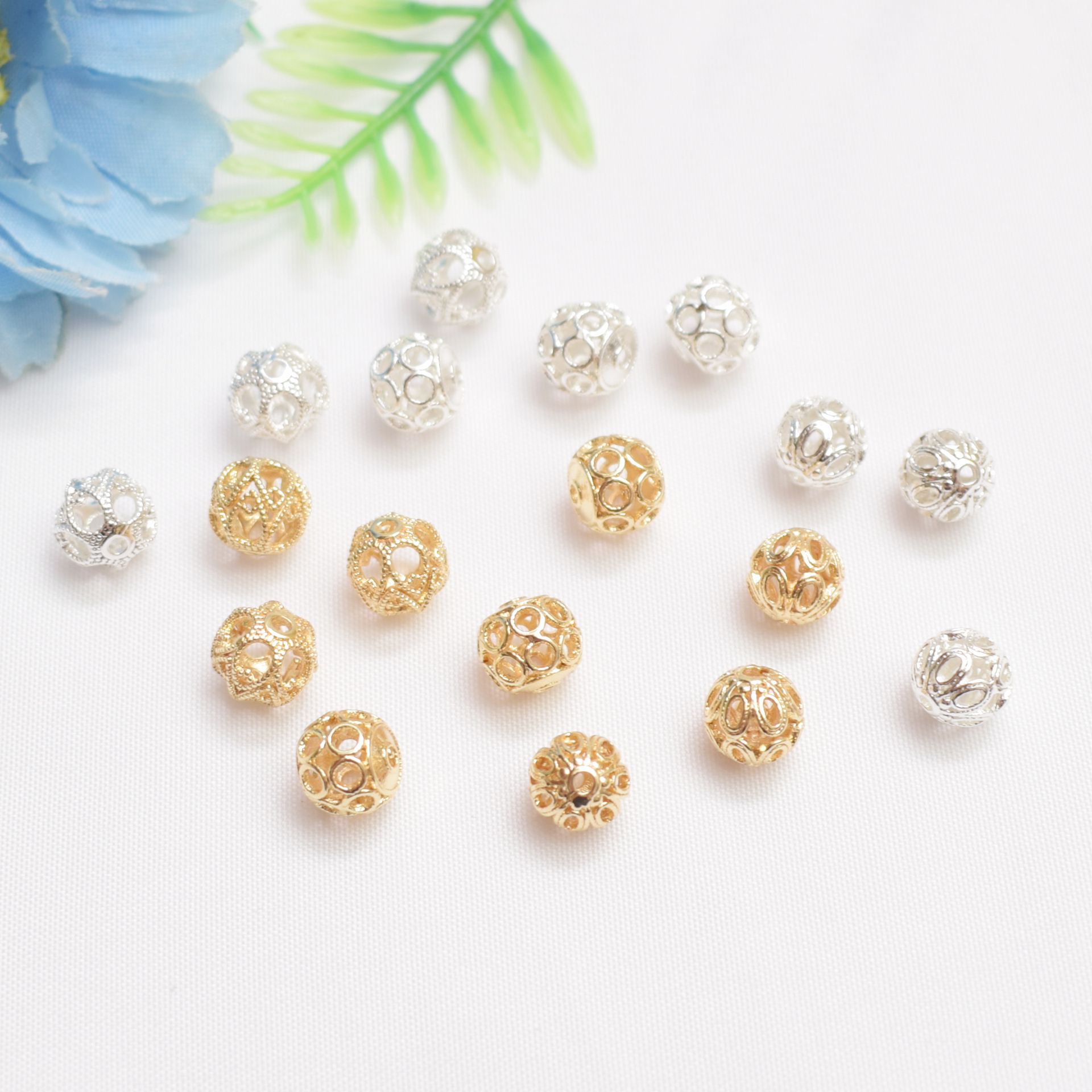 保色14k包金散珠透かし玉8mm転運珠数珠配珠diyブレスレット隔珠アクセサリー部品