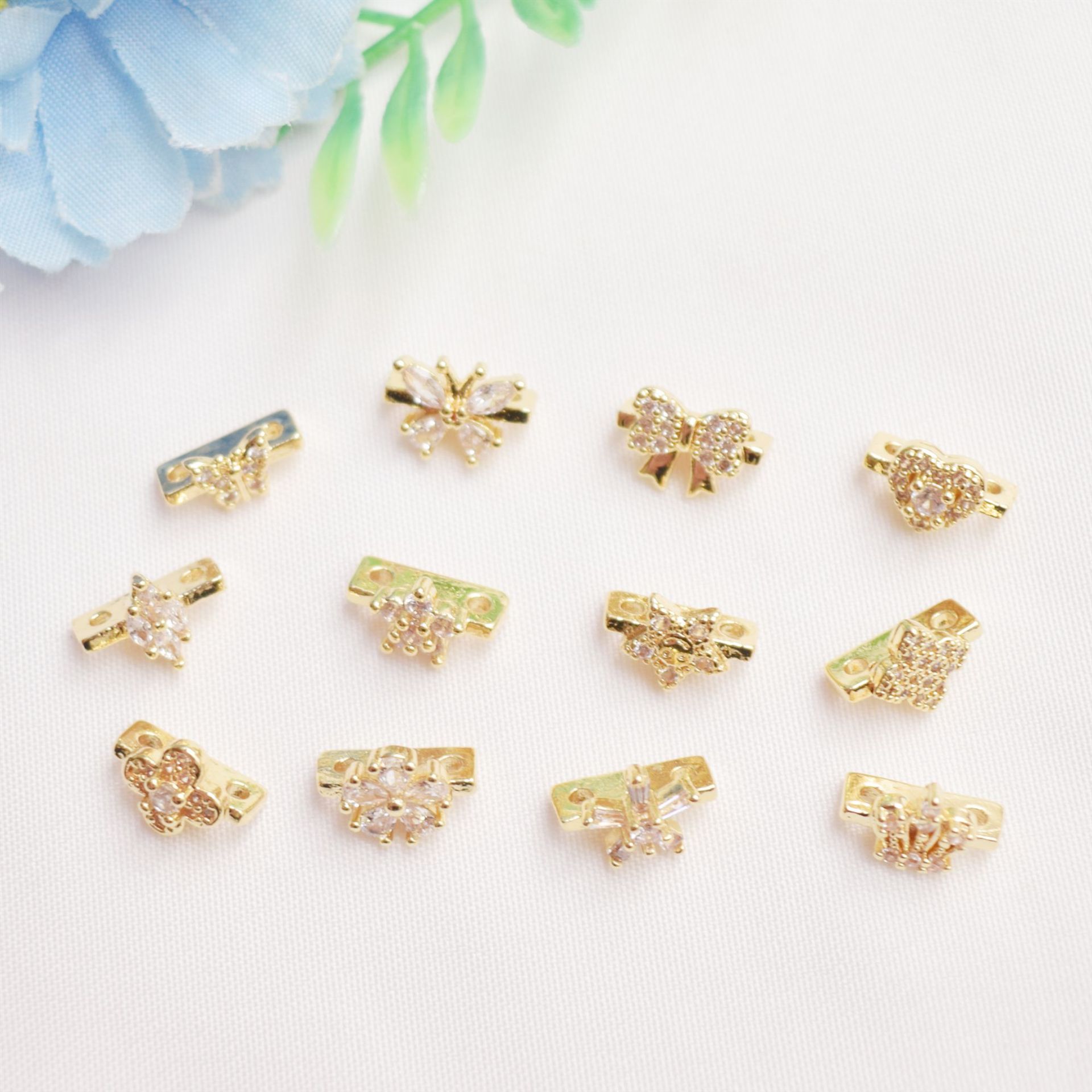 14k包みの金の保色のマイクロはジルコンの双列の愛の蝶の王冠の梅の花の数珠のアクセサリのdiyのブレスレットの装飾を入れます。