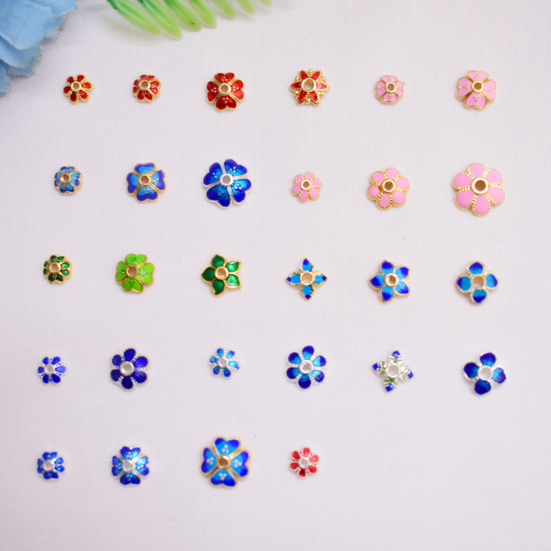 保色滴油花托景泰青焼藍花帽アクセサリーdiyブレスレットネックレスビーズアクセサリー