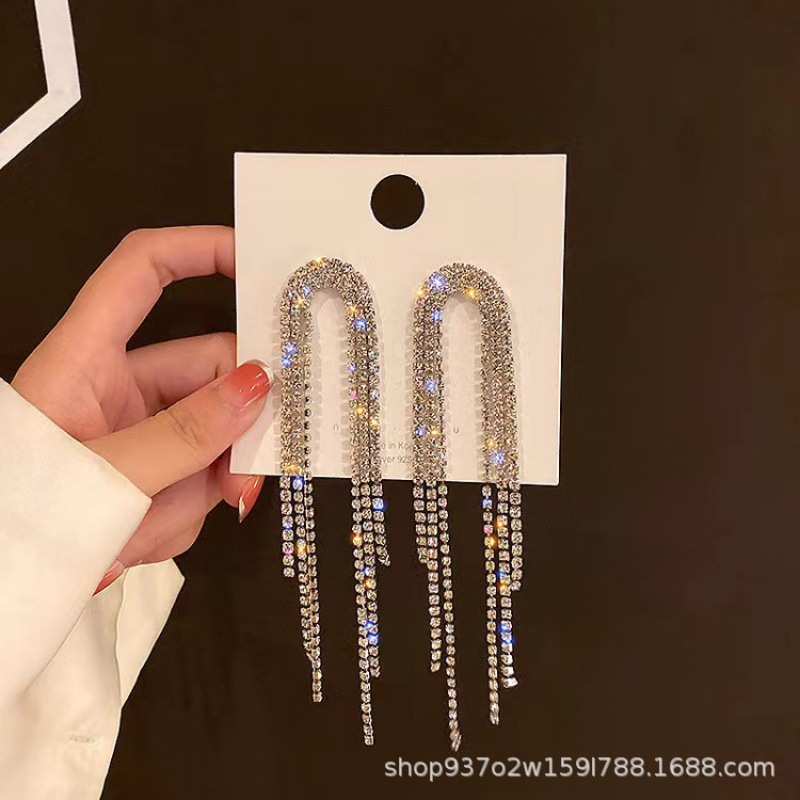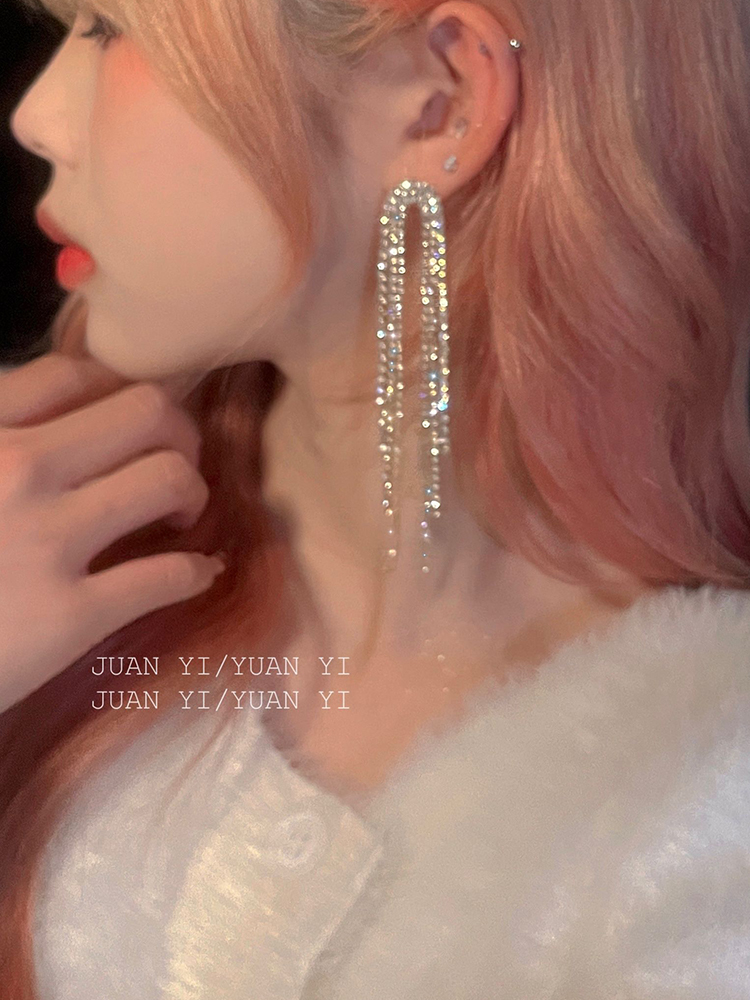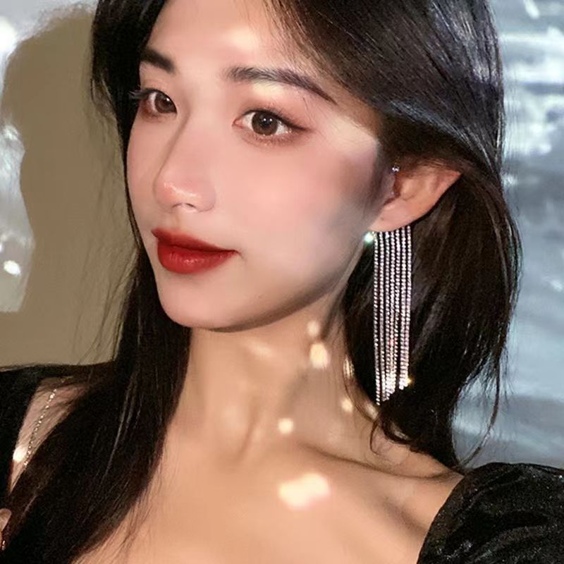 韓国気質流蘇長型ネット赤軽贅沢デザイン感満ドリルイヤリング秋冬2022新ファッション