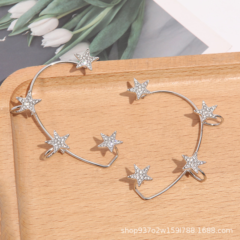2022新型の軽い豪華なダイヤモンドの五角星のかわいい少女のイヤリングの満天の星の耳は耳の穴の小さい大衆の設計の新しいことがありません。