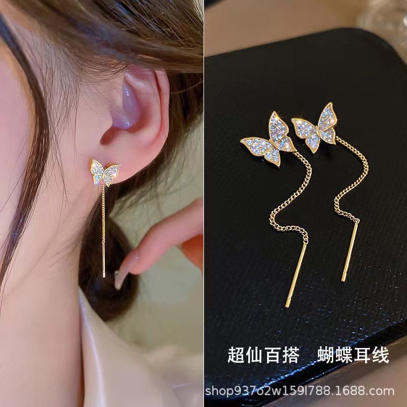 2022新型超仙蝶流蘇イヤリング女性百合ファッション気質高級感ジルコンネット赤耳線ロングタイプ