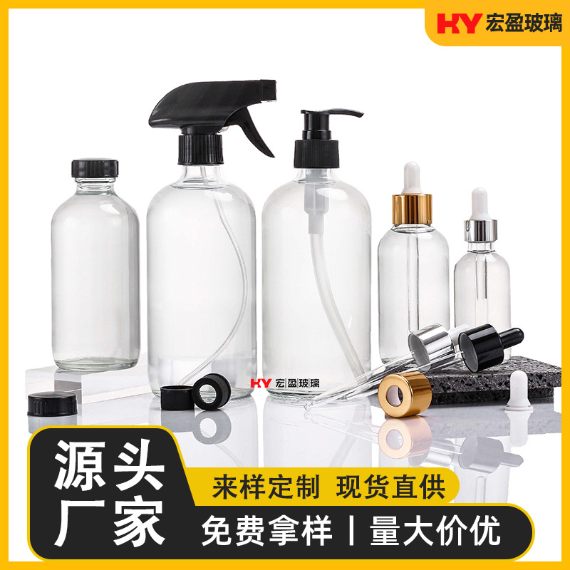 クロスボーダー透明ボストンドロッパーエッセンシャルオイルボトル化粧品包装エッセンスボトルプレスローションスプレーボトル空ボトル