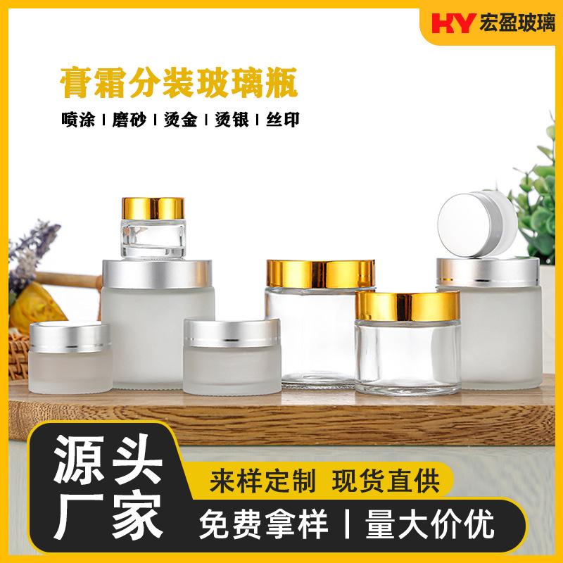 現物50g透明クリーム瓶100g蒙砂フロスト化粧品分注瓶アイクリームクリーム空瓶蓋付き