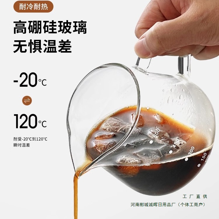 手淹れコーヒーポット クラウドポット シェアリングポット 厚みのある耐熱ガラス コーヒーダイヤモンドポット スケール付き フェアカップなし