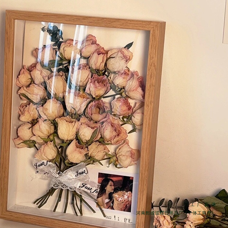 ドライフラワーフォトフレーム diy 生産手作りクリエイティブ素材バラ標本額縁立体ギフト空枠テーブル