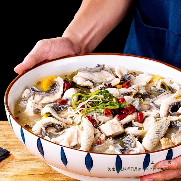 9inch セラミックスープボウル家庭用 2025 新しいピクルスフィッシュ大ボウル大ボウル毛血王茹でた肉ピクルスフィッシュなし