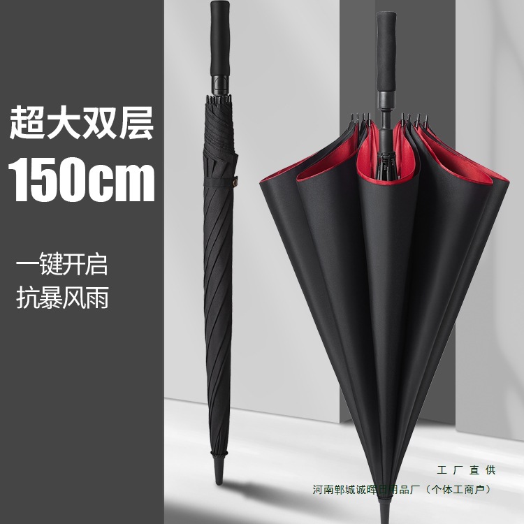 ドイツ品質の二層自動傘、ロングハンドル、強化、厚み、強力、耐嵐性、男性用3組