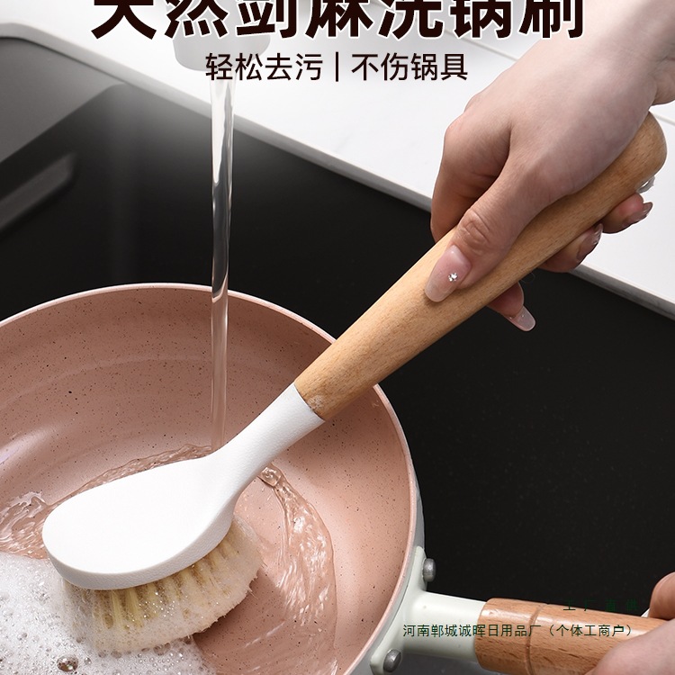 サイザル麻ポットブラシ家庭用長柄ポットブラシ食器洗いポット木製ハンドルブラシキッチンスケール除去油汚れクリーニング