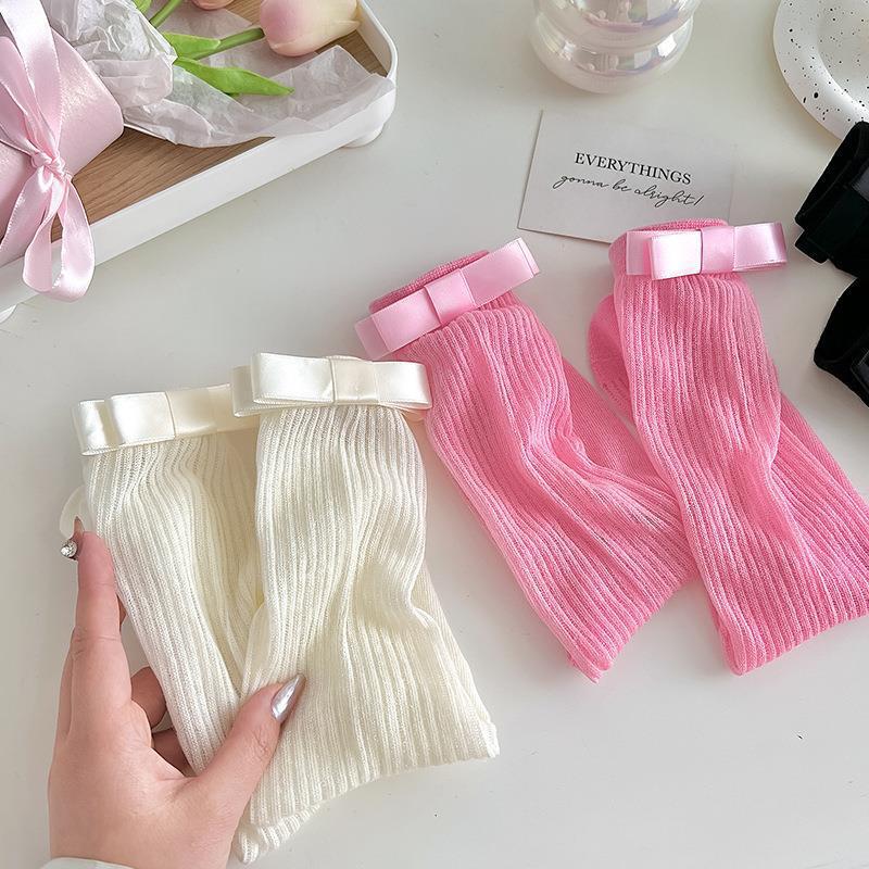 2025春夏の新しい薄いタイプの日本の木の耳元jkの白い中筒の靴下の甘くてかわいい蝶結びのレースのすね