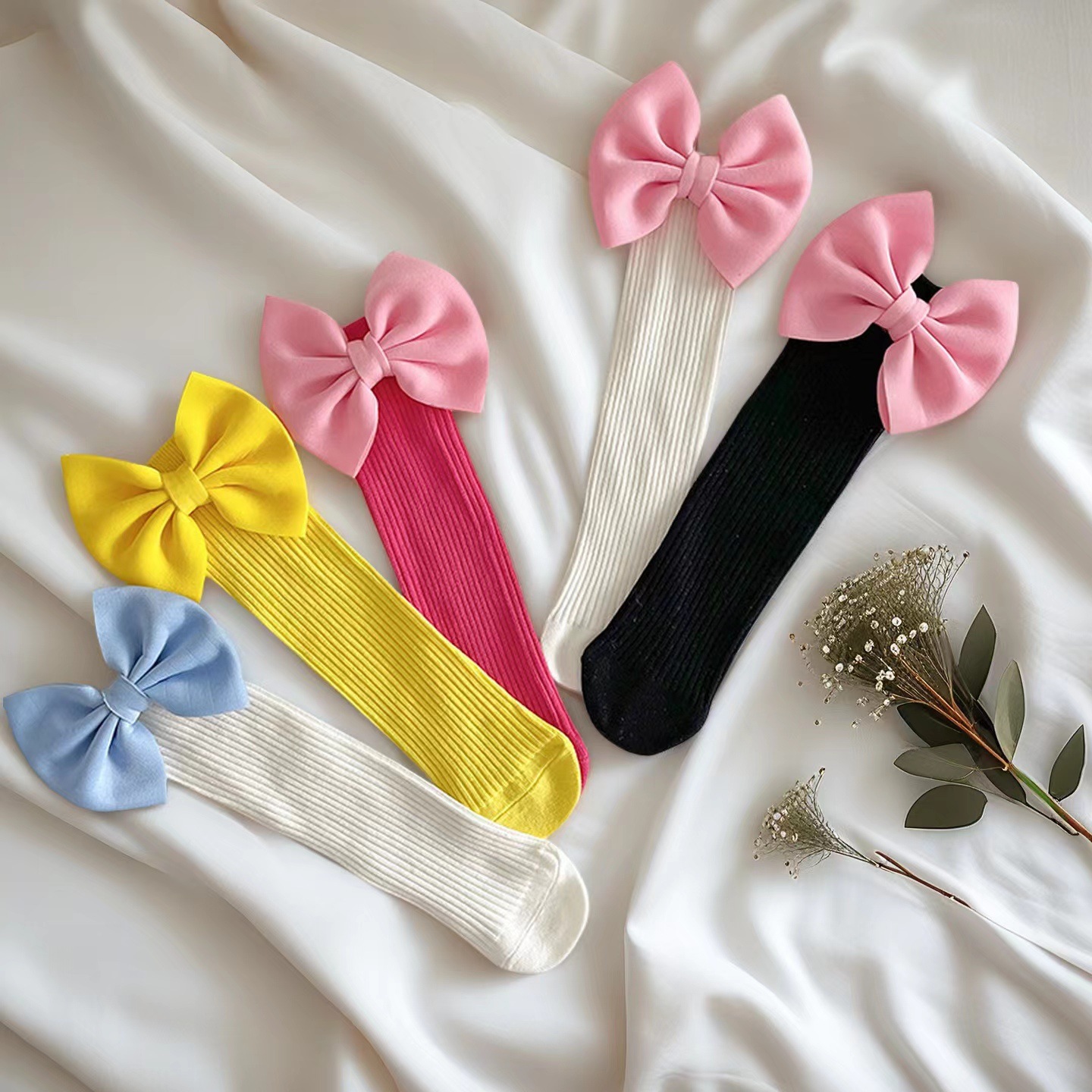 源工場2023春秋ファッション百合蝶結び女性靴下ネット赤同タイプの流行甘い中筒靴下子供