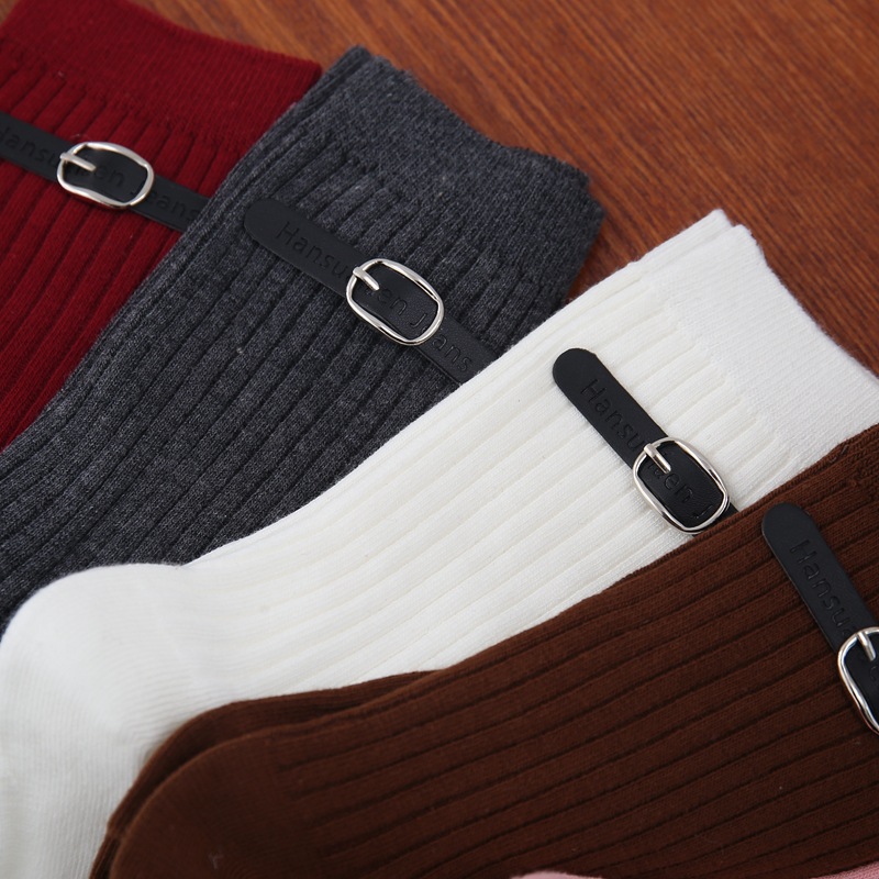 小衆設計重工ボタン靴下純色太線ニット中筒靴下韓国版個性爆発街ネットレッドのファッション