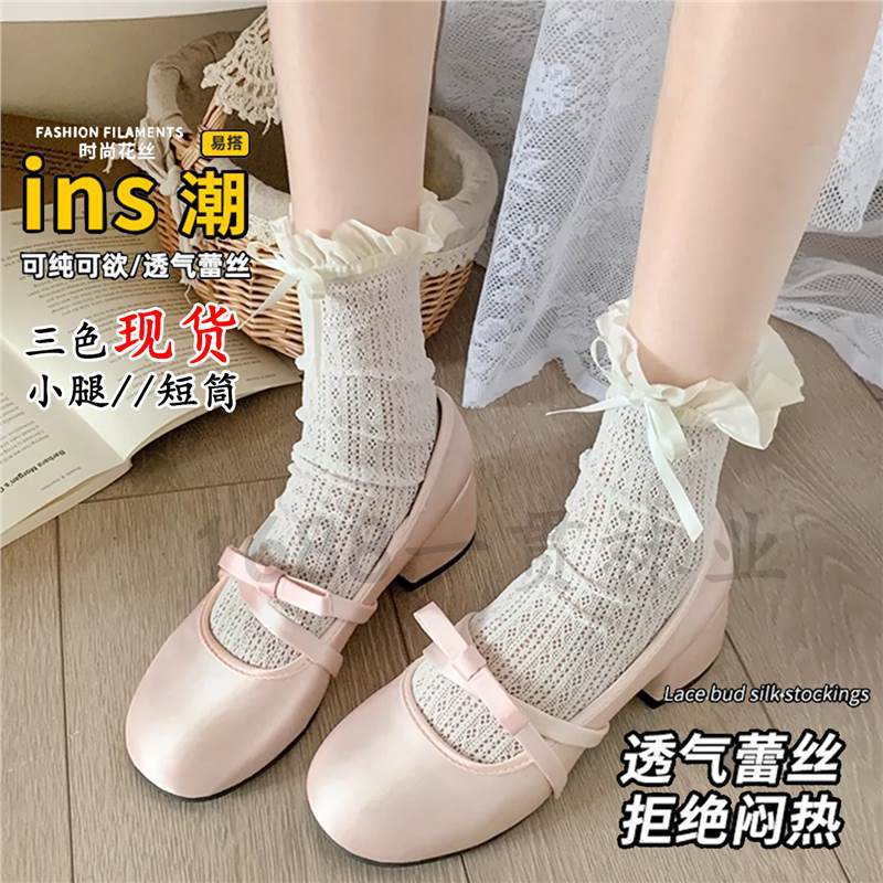 レースの靴下のショートスリーブの甘いレースの蝶結びのベルトのふくらはぎの靴下の女性の夏の薄い金のjkメアリーの珍は靴下を積みます。
