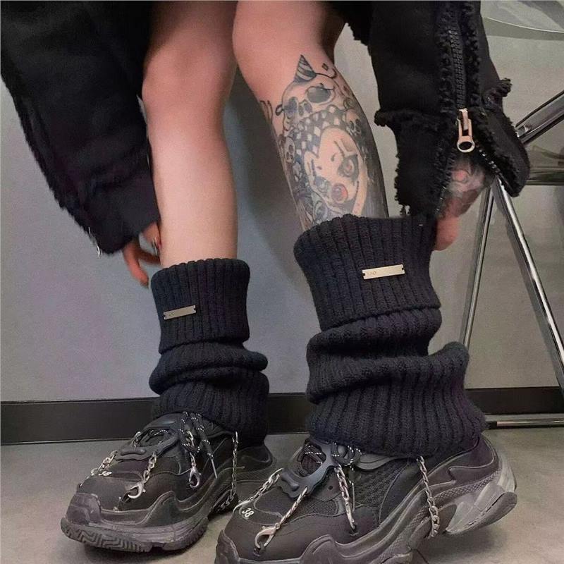 韓国東大門銀標靴下カバー秋冬純色スタッキングソックスy 2k脚カバー日系ゆるいニットカバー