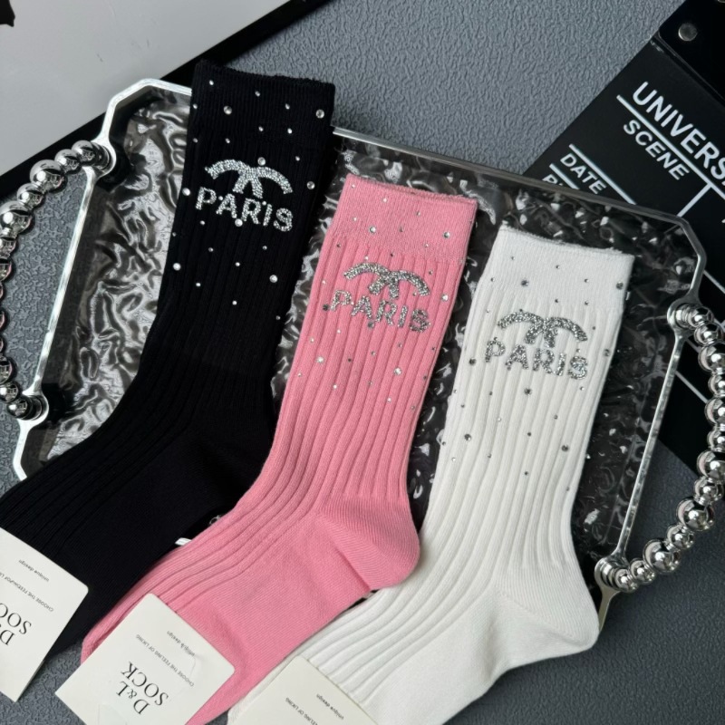 2024年韓系蝶結び真珠小衆韓品女中筒靴下