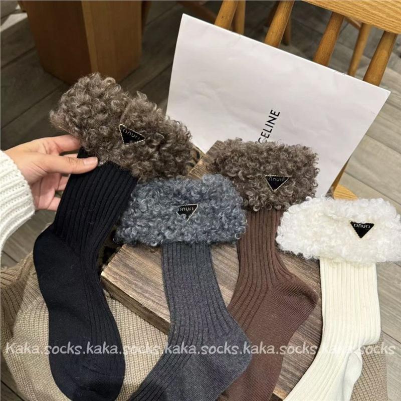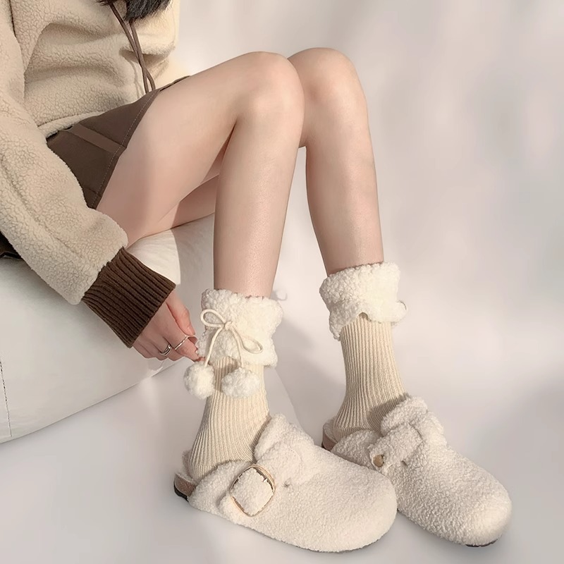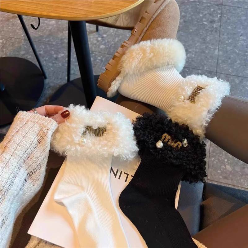 秋冬の新型の欧品の女性の靴下の洋気の靴下の口の羊の小毛のレースの中で筒の靴下のミュールのマークの玉のドリルの雪の靴の靴下