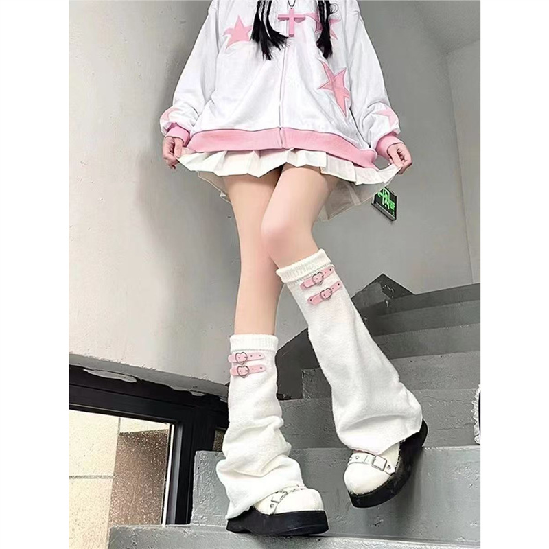 2025 日本オリジナルニットワイドレッグパイルソックス y2k ホットガールサブカルラブレザーバックル jk ストッキング