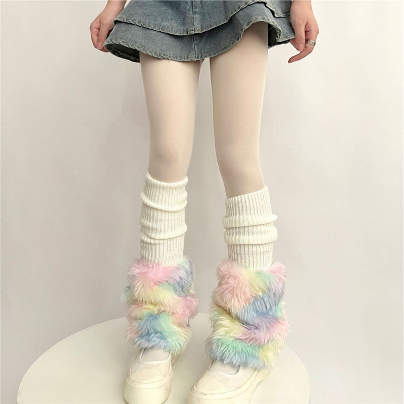ドーパミンカラーニット靴下カバー女性冬かわいい毛毛毛毛毛足カバー保温模造毛皮靴下jk下腿