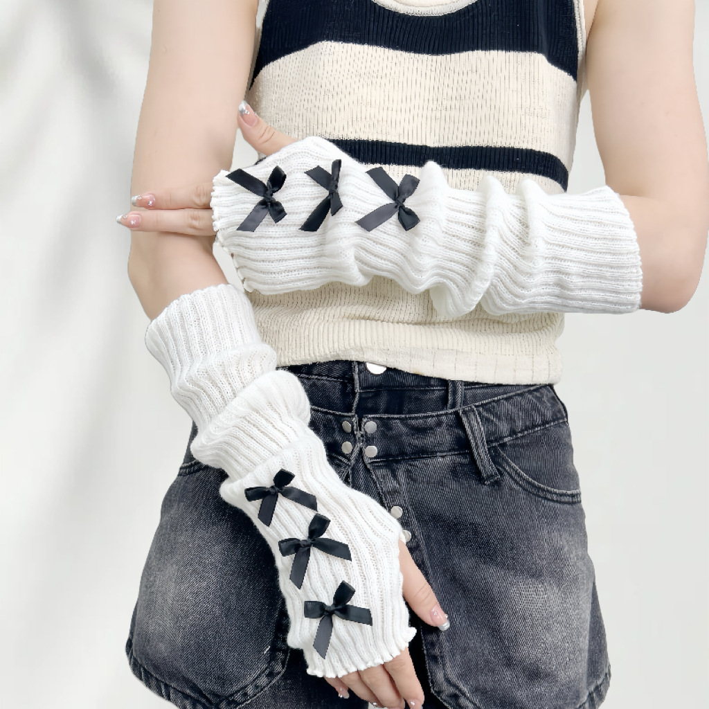韓国原宿ミレニアム Y2K ホットガールレースメッシュステッチリボン軽量コンシーラーハンドスリーブ手袋