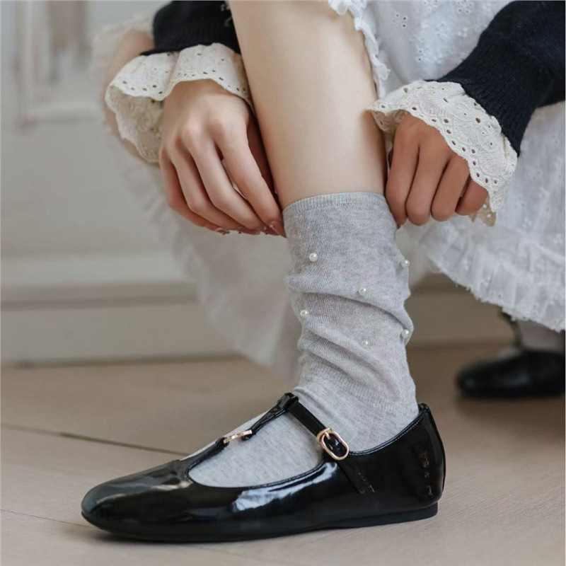 2025日の日本の靴下の薄い綿の真珠の中の筒の靴下の春夏の通気性の女性jkの靴下のバレエの風の百合の学生の靴下