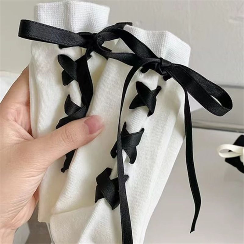 ロリータ靴下jkレースのふくらはぎ靴下女性春と秋の夏の薄いタイプのバレエ風の蝶結びの中筒のスタッキングソックス