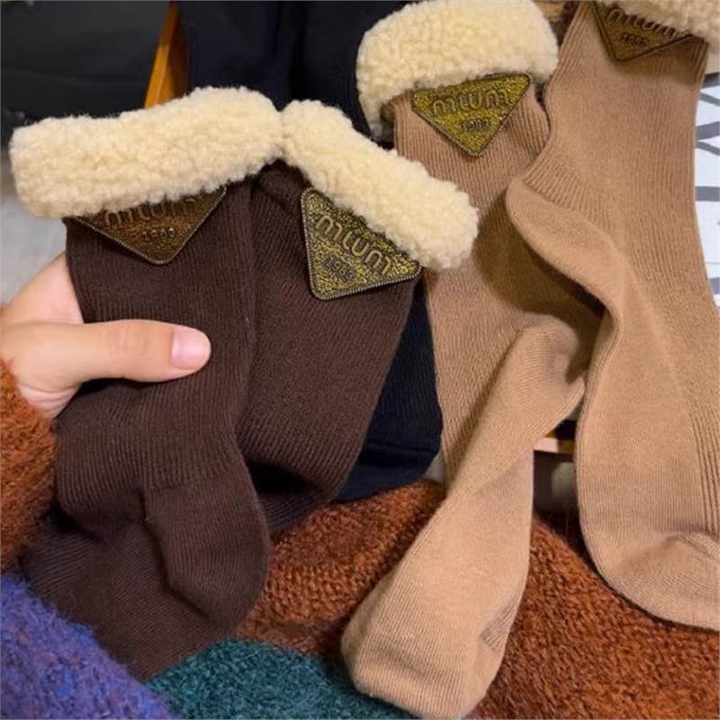 秋冬綿の中筒の靴下の三角の毛の靴下の重工業の標識の金属のファッションのめくりの口の新型の手は靴下の雪の子羊を縫います