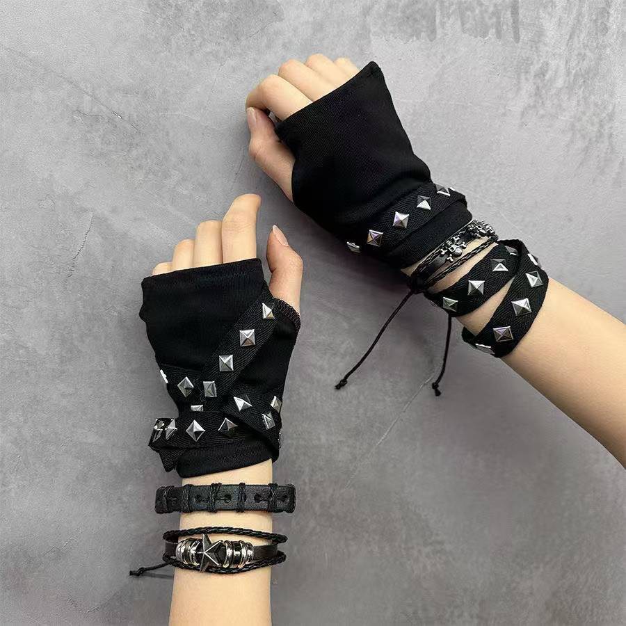 新しいスタイルのスリーブ Y2K ミレニアムホットガールリベットナイト機能的なスタイルパンクダークダンスパフォーマンススタイルハーフフィンガースリーブ