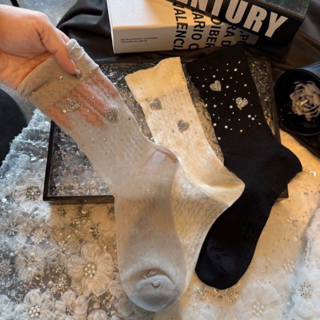 2025 特大リベットパールフラワーブラックホワイトネットレッドスリムミッドカーフショートブーツパイルソックスファッショナブルなふくらはぎ