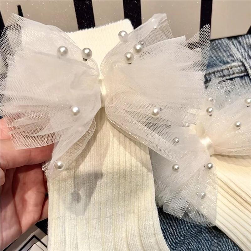 レースソックス子供秋jkロリータふくらはぎソックス女の子レースストッキング蝶結びアクセサリーミドルストッキング
