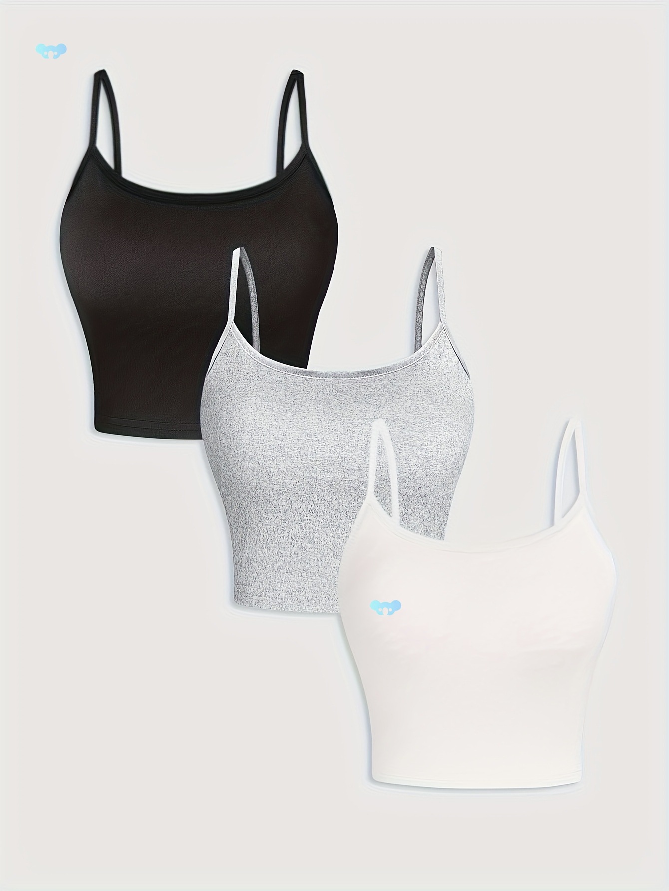 3 パック ソリッド スパゲッティ ストラップ トップ Y2K バックス クロップクロスボーダー