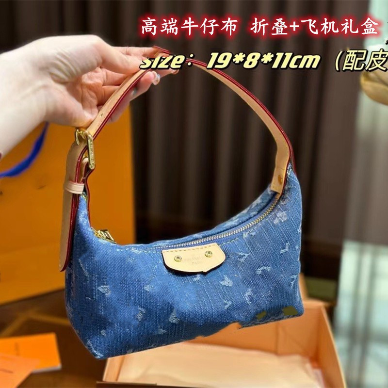 25年新作ヒルズデニム弁当箱カバンタンニン脇下カバン高級品エンドウ豆カバン元宝カバン手提げ女カバン