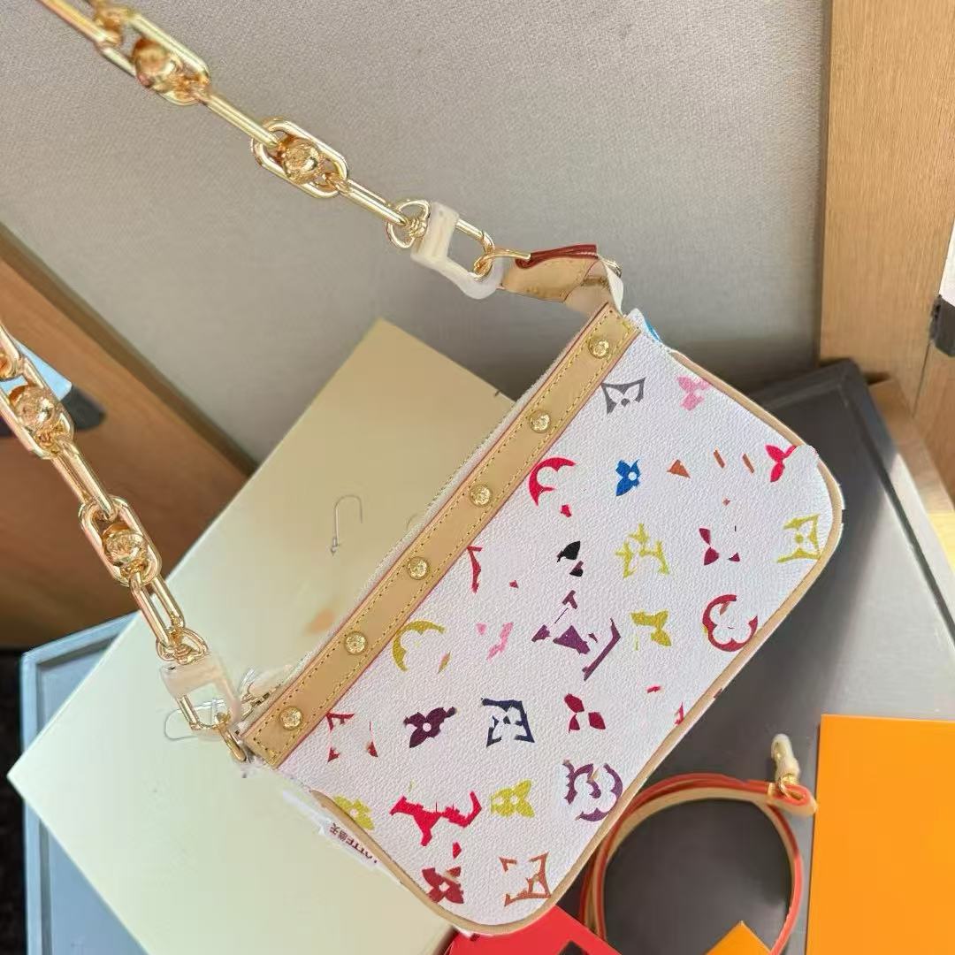 2025新型三彩高級感ファッションチェーンバッグ花シングル肩脇下バッグ女性軽量斜め掛けバッグ