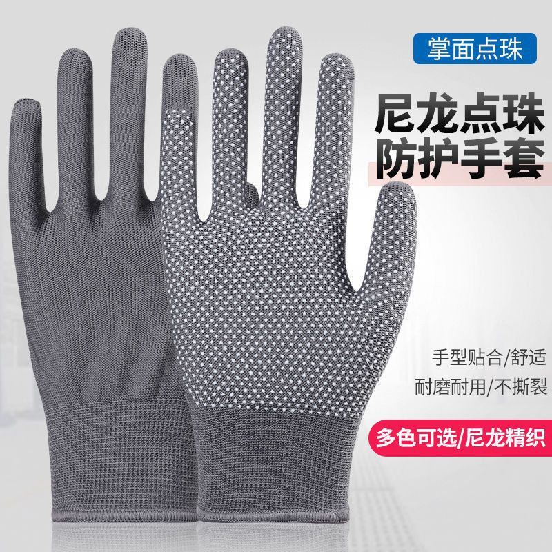 労働保護手袋ナイロン滑り止め手袋運転手が運転してビーズを運ぶ通気性の薄い仕事は手袋の男性の金を指す