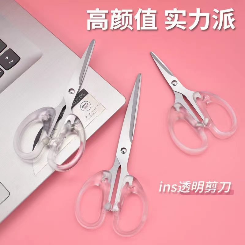 オフィス専用学生はさみ在庫卸売透明ハンドル小型はさみステンレス鋼アートはさみ家庭用ポータブルはさみ