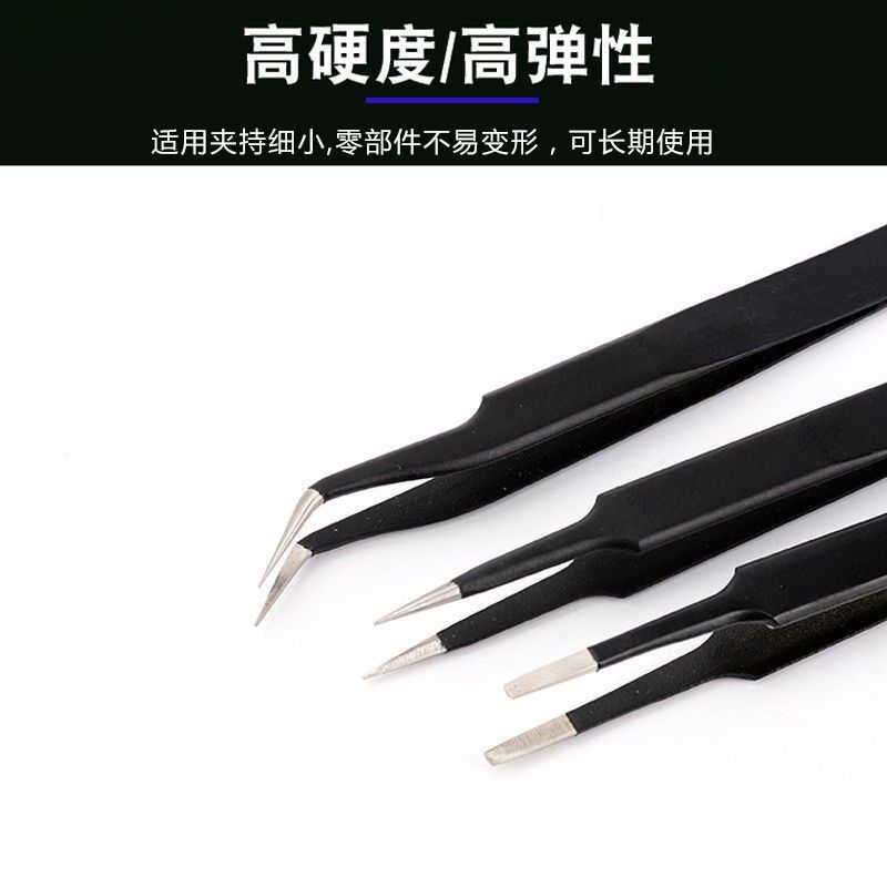 ステンレス6点セットピンセット1.5mmESD精密ピンセット黒色尖頭エルボ分解機ツール