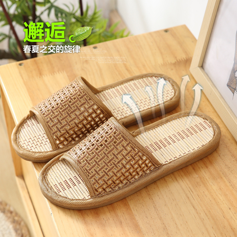 新しいわらマットスリッパ夏竹織籐草ホームメンズカップル屋内ソフト底木製床サンダル女性用