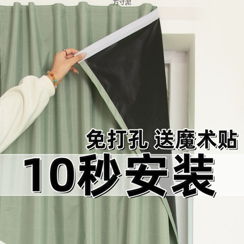 遮光 穴あけ不要 粘着式取り付けカーテン 賃貸住宅風カーテン 出窓用遮光ショートカーテン