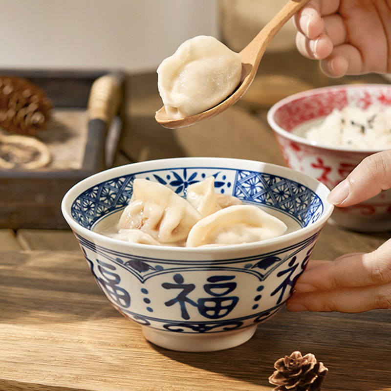 中国風のライスボウル家庭用新しい祝福食器ボウルと皿セットセラミック食事ボウルとプレート馬小
