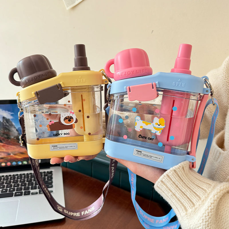 見栄えの良いストローカップ夏ポータブル女の子カップかわいい漫画子供用ダブルウォーターボトル新しいスタイル