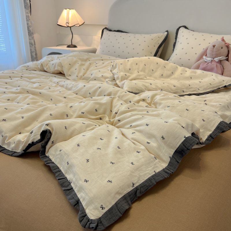しわ加工糸ウォッシュコットン4点セットレトロレースレースリボンフレッシュ学生ベッドシーツ3点セット2層