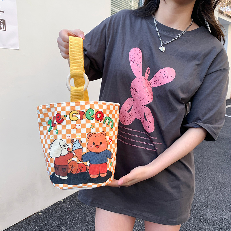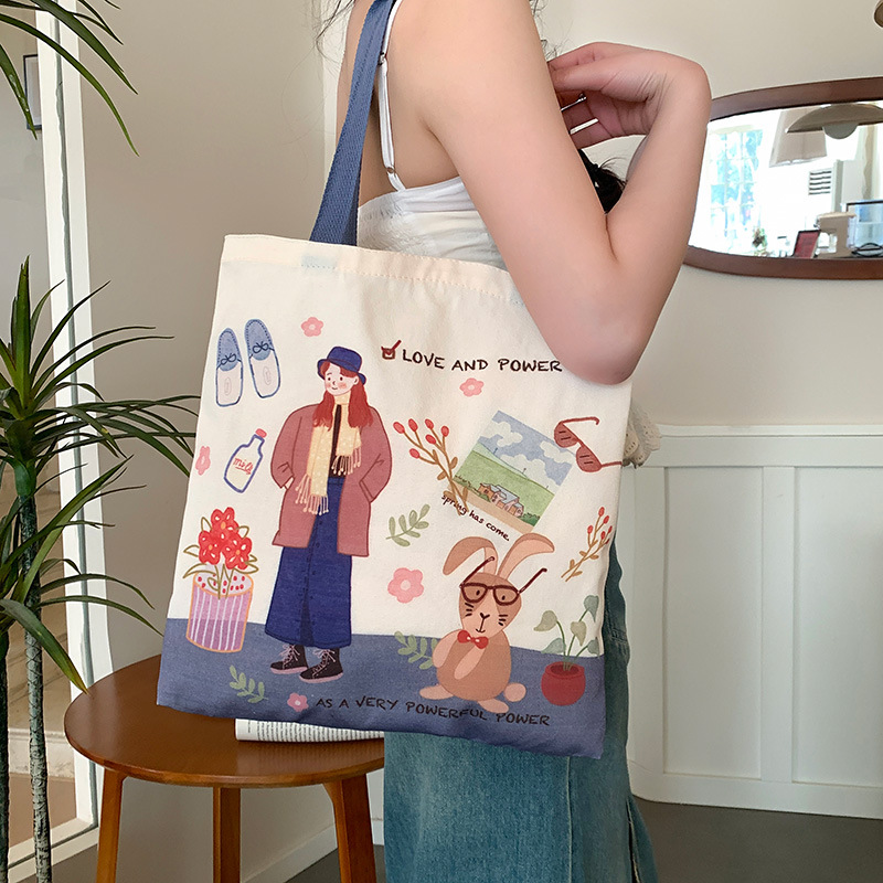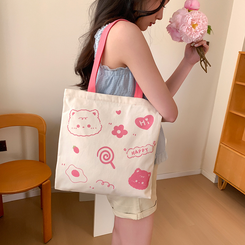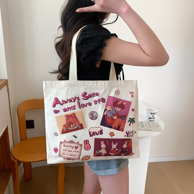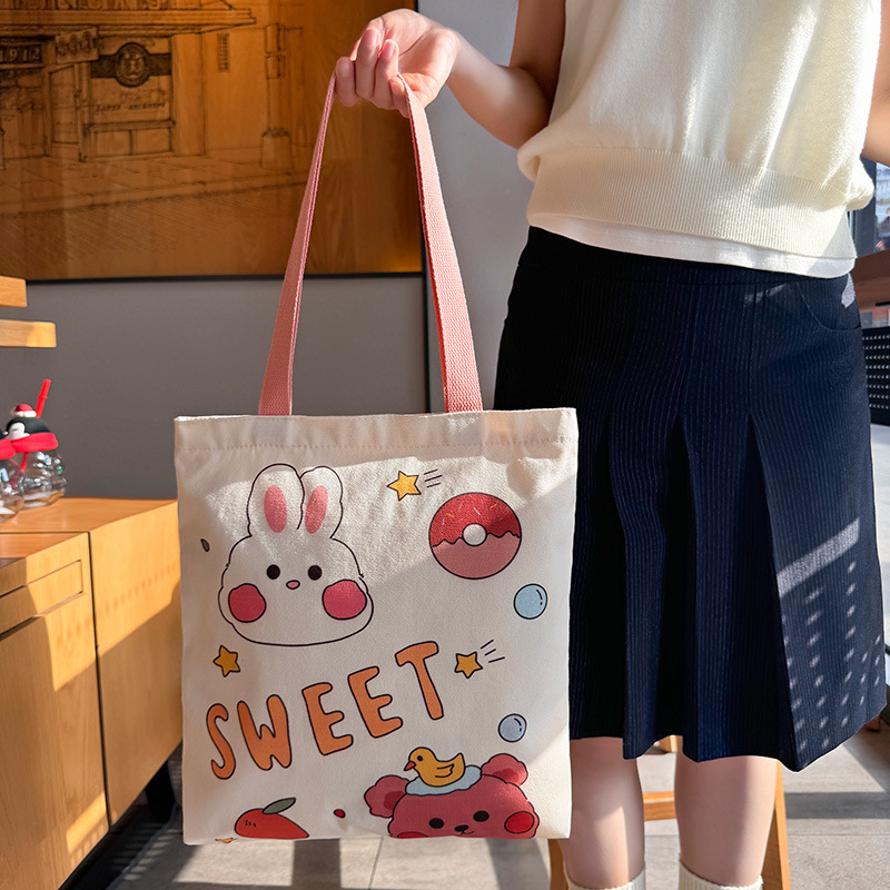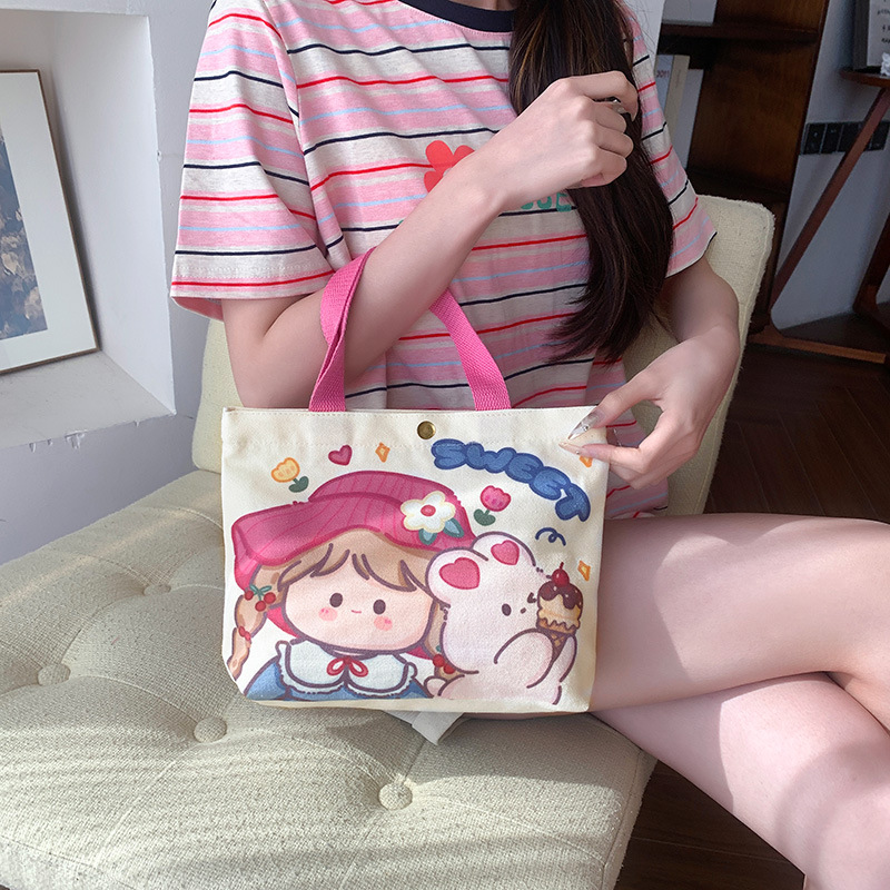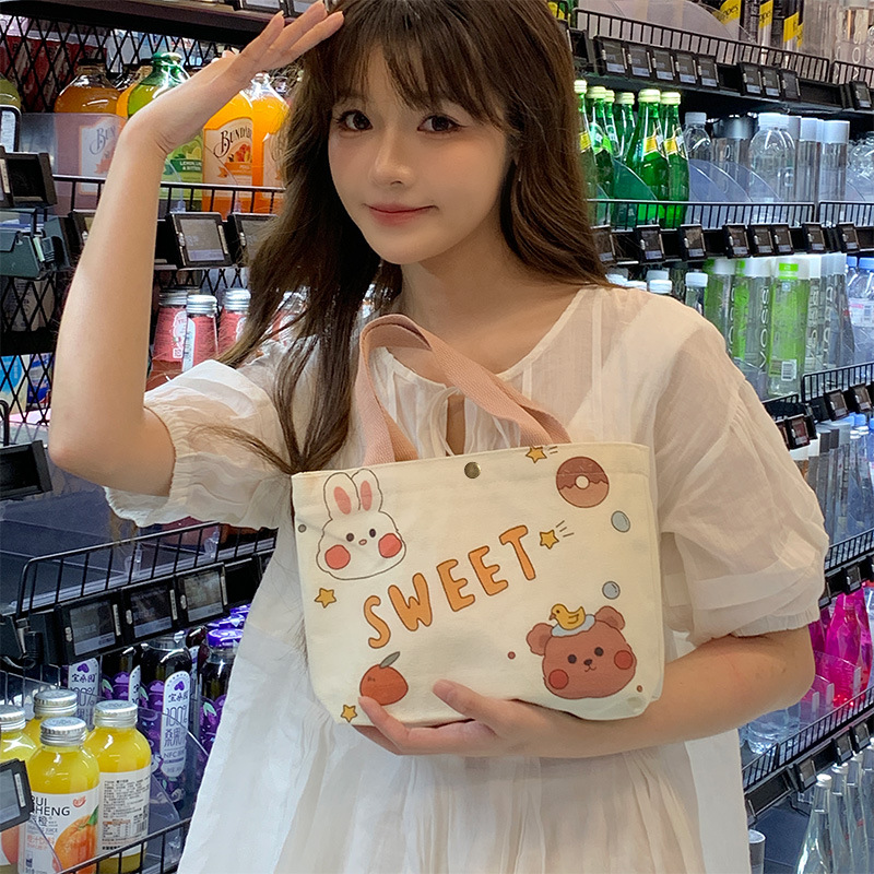 韓国語版の大容量収納袋キャンバス家庭教師バッグ弁当袋新しい漫画かわいいハンドバッグメーカー卸売