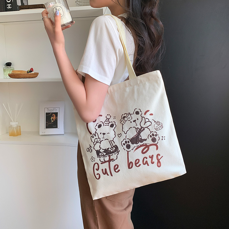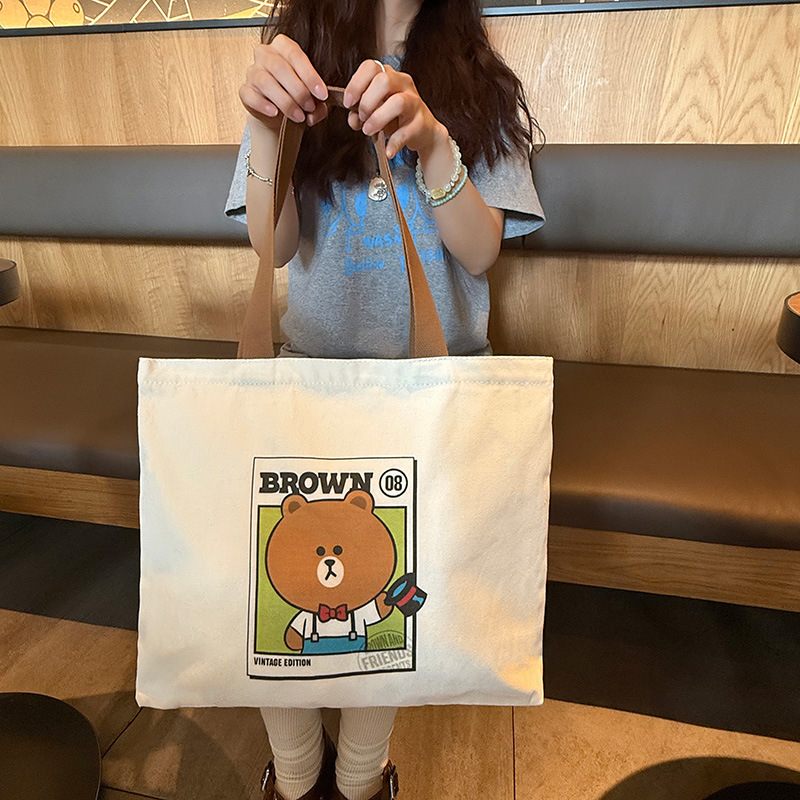 オリジナルニッチデザイン漫画ヒグマ本物の認定シリーズジッパートートバッグキャンバスバッグ女性の新しい小さなバッグ