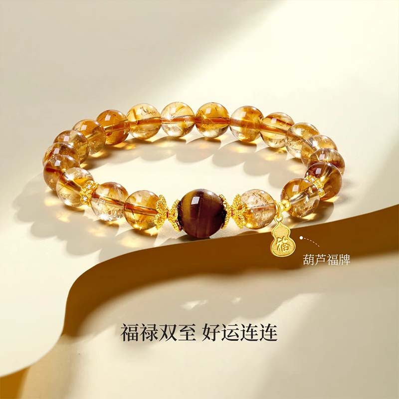 天然シトリンイエロータワークリスタルブレスレットライト高級ニッチデザイン富と幸運のビーズタイガーアイストーンフーリブレスレット卸売