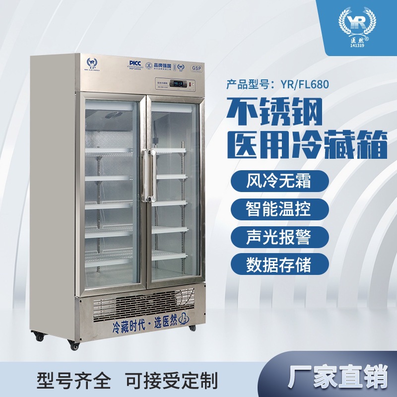 Yiran ステンレス鋼薬品クーラーキャビネットプロフェッショナル医療ドロップシッピング温度と湿度デュアル制御デュアルディスプレイ YR/FL680 ダブルドア
