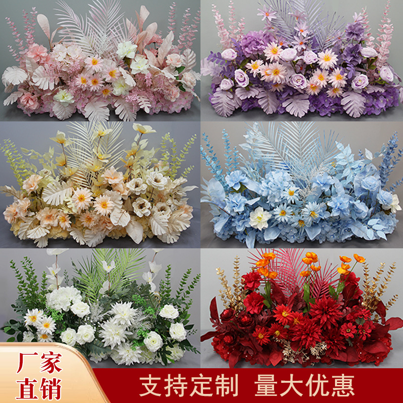 新しいウェディングスタイルの大きなフラワーアレンジメント、シルクフラワー、完成品の装飾、ユーカリフラワーアレンジメント、Tステージ、ウェディングフラワーアレンジメント