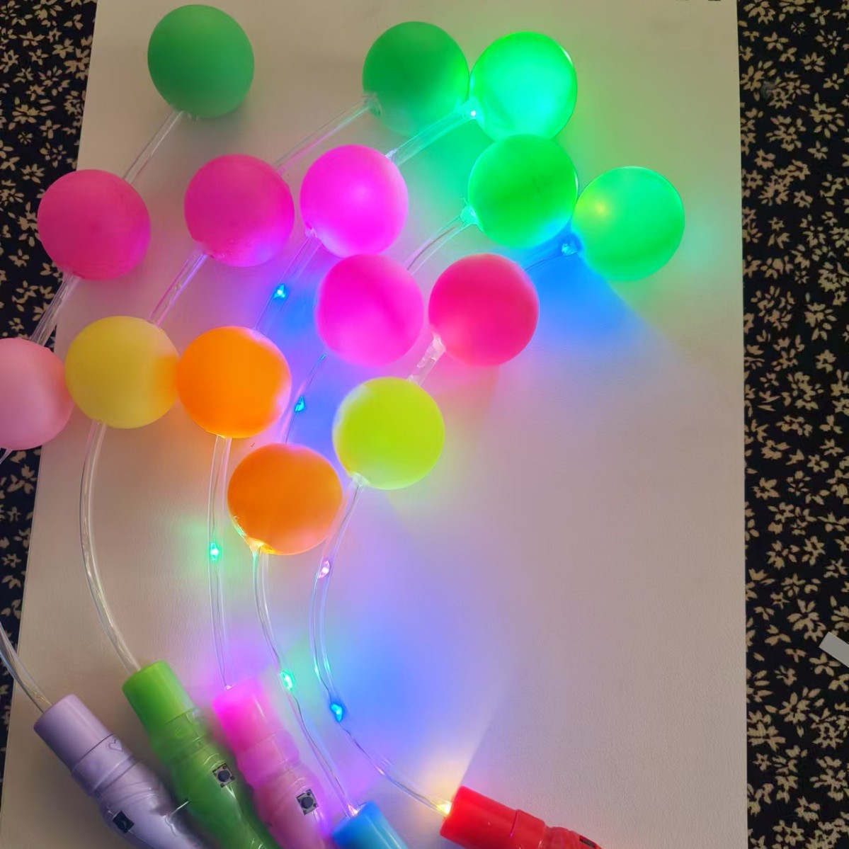 正月の提灯の手がボールを振ってボールを振って七色の閃光ledランプの新商品の子供のおもちゃの雰囲気を感じて屋台を押します。