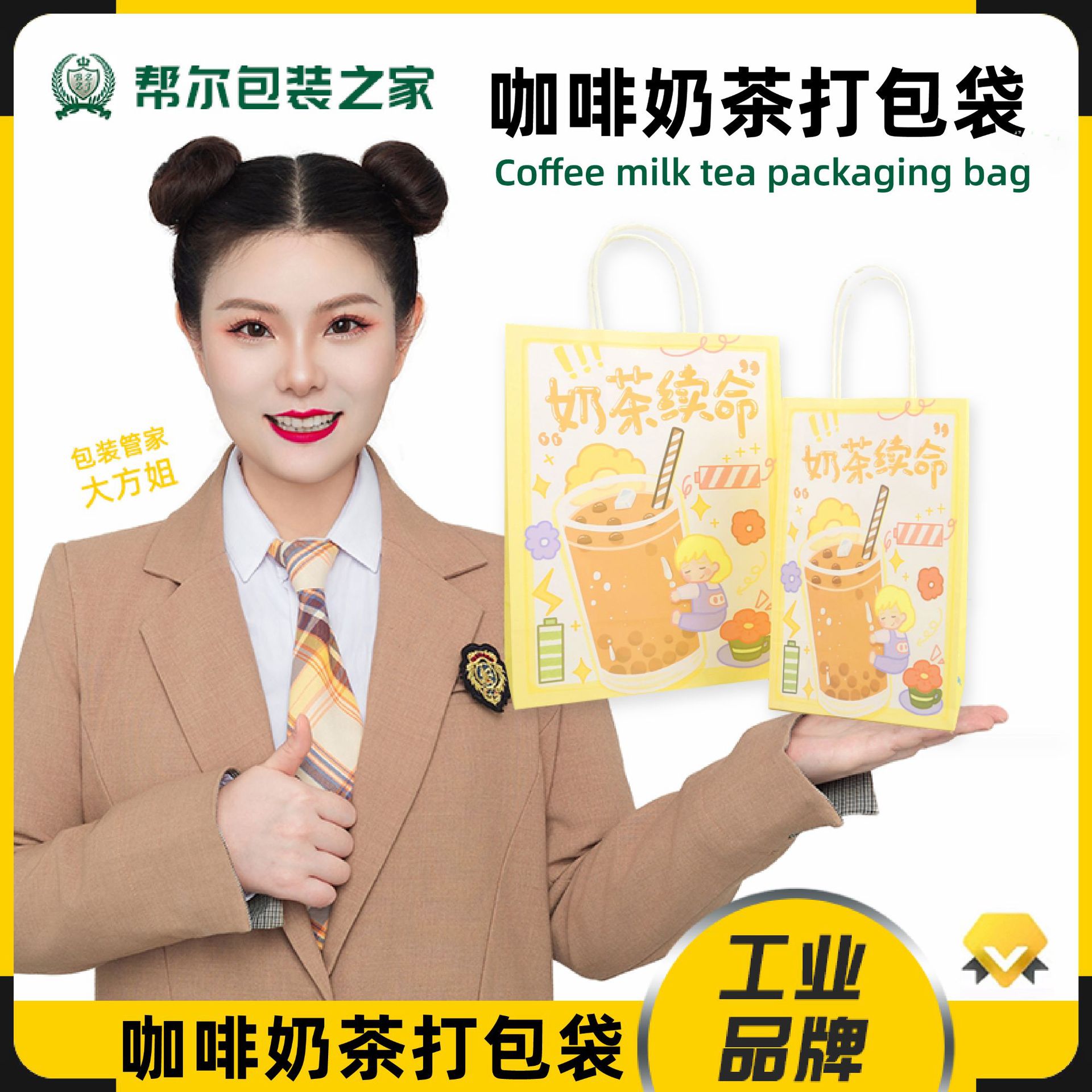 コーヒーミルクティーのテイクアウトバッグのミルクティーのダブルカップは現物のクラフト紙袋の手提げ袋のミルクティーのカップのセットになります。