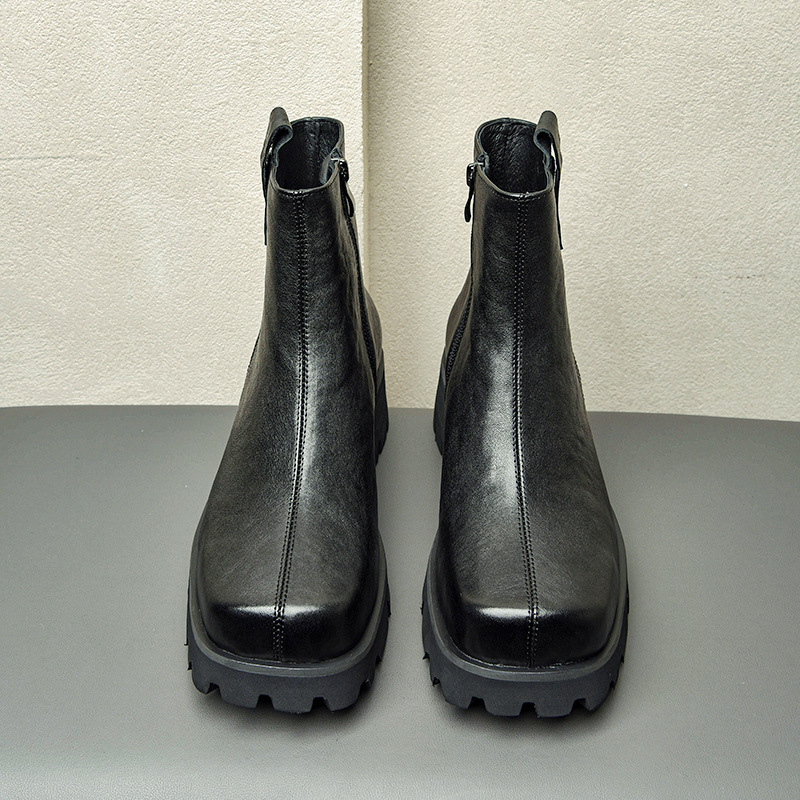 一枚代2023冬新作ブーツ男本革厚い底サイドファスナー軽豪華高級ファッションマーティンブーツ